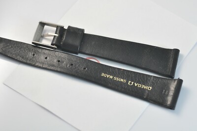 genuine vintage omega watch band strap, black genuine leather, perfect conditions